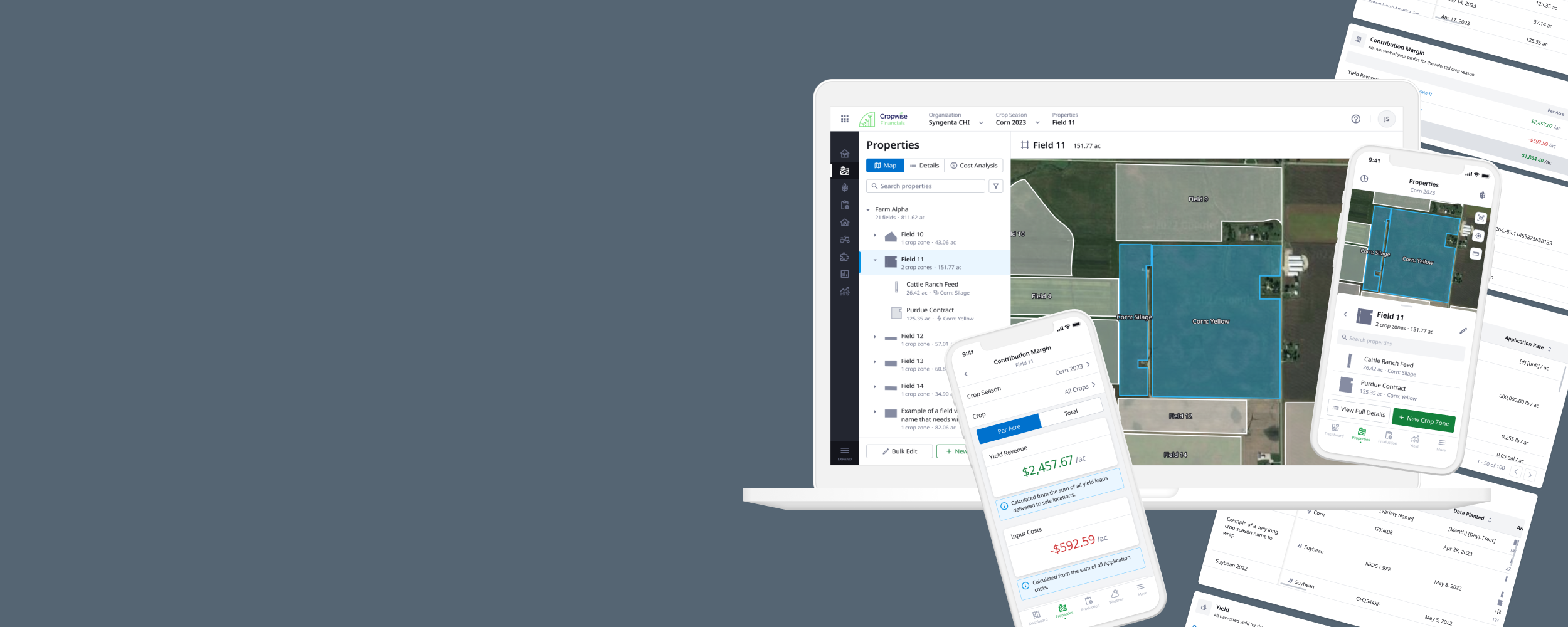 Providing farmers a singular space to keep record of field auditable information, costs, and revenue.